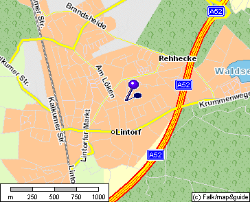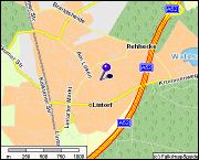 From Düsseldorf take the Highway A52 towards Essen, leave at the Exit Ratingen-Lintorf, Tiefenbroich Turn Right towards Lintorf, turn Right again Straight ahead until the third Trafficlight and right again